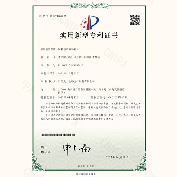 2011年,天一生物與山東省藥學(xué)科學(xué)院建立產(chǎn)學(xué)研合作,聯(lián)合研發(fā)疝修補(bǔ)類(lèi)器械。該產(chǎn)品研發(fā)后曾在首都醫(yī)科大學(xué)附屬北京朝陽(yáng)醫(yī)院、首都醫(yī)科大學(xué)附屬北京同仁醫(yī)院進(jìn)行臨床試驗(yàn),試驗(yàn)結(jié)果表明,本公司產(chǎn)品組合形狀更符合臨床使用要求,方便臨床醫(yī)生術(shù)中操作,目前共擁有四大系列產(chǎn)品,臨床使用效果得到了行業(yè)眾多專(zhuān)家的一致好評(píng)。