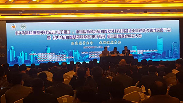 2016年3月18-19日,日照天一生物高層領(lǐng)導(dǎo)帶領(lǐng)銷(xiāo)售團(tuán)隊(duì)參加在廣西南寧舉辦的《中華疝和腹壁外科雜志(電子版)》、中國(guó)醫(yī)師協(xié)會(huì)疝和腹壁外科培訓(xùn)基地全國(guó)巡講(華南地區(qū)南寧站)暨《中華疝和腹壁外科雜志(電子版)》第三屆編委會(huì)成立大會(huì)。