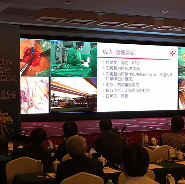 大會(huì)首先進(jìn)行的14臺(tái)各類(lèi)腹外疝患者的腹腔鏡和開(kāi)放手術(shù)直播。部分手術(shù)采用了天一生物生產(chǎn)的舒泰可疝修補(bǔ)片。