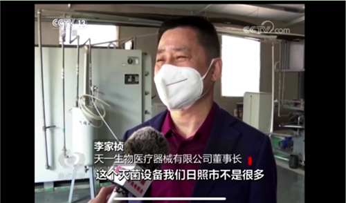 4月2日晚,董事長李家禎登上了央視《焦點訪談》欄目,面對記者的采訪,董事長李家禎說“他們說要給錢,我們說不用不用,沒必要,義務服務嘛!別的我們做不到,這點還是沒問題的。這個滅菌設備我們日照市不是很多,所以他找到我們。我們義無反顧,提供這點服務是應該的。”簡單樸實的話語體現(xiàn)了一個企業(yè)家的社會責任感和擔當,自2月4日至今,我們共為66個批次近400萬只口罩免費滅菌,只要有需要,我們將繼續(xù)為口罩滅菌做好保障。